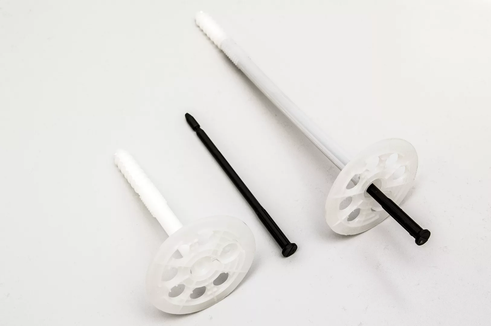 Insulation anchor for wall and ceiling mounting, suitable for concrete, siporex, or leca walls.