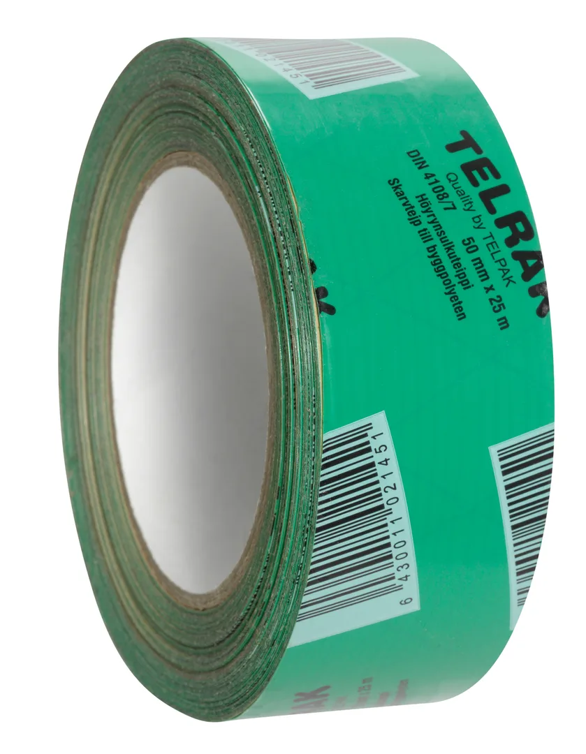 PEL vapor barrier and sealing film (CE SFS-EN 13984) prevents air leakage and the formation of harmful moisture in the structures. The film is lightly tinted blue.