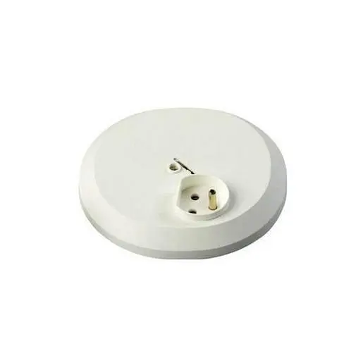 The luminaire connection cover AKK13 is a Class 1, two-pole, earthed cover suitable for mounting directly onto the ceiling surface or on top of a junction box. Continuation of a 2.5 mm² (-0-) circuit wire is possible. A luminaire with a maximum of 6 A 250 V can be connected. The maximum load for the suspension hook is 15 kg.