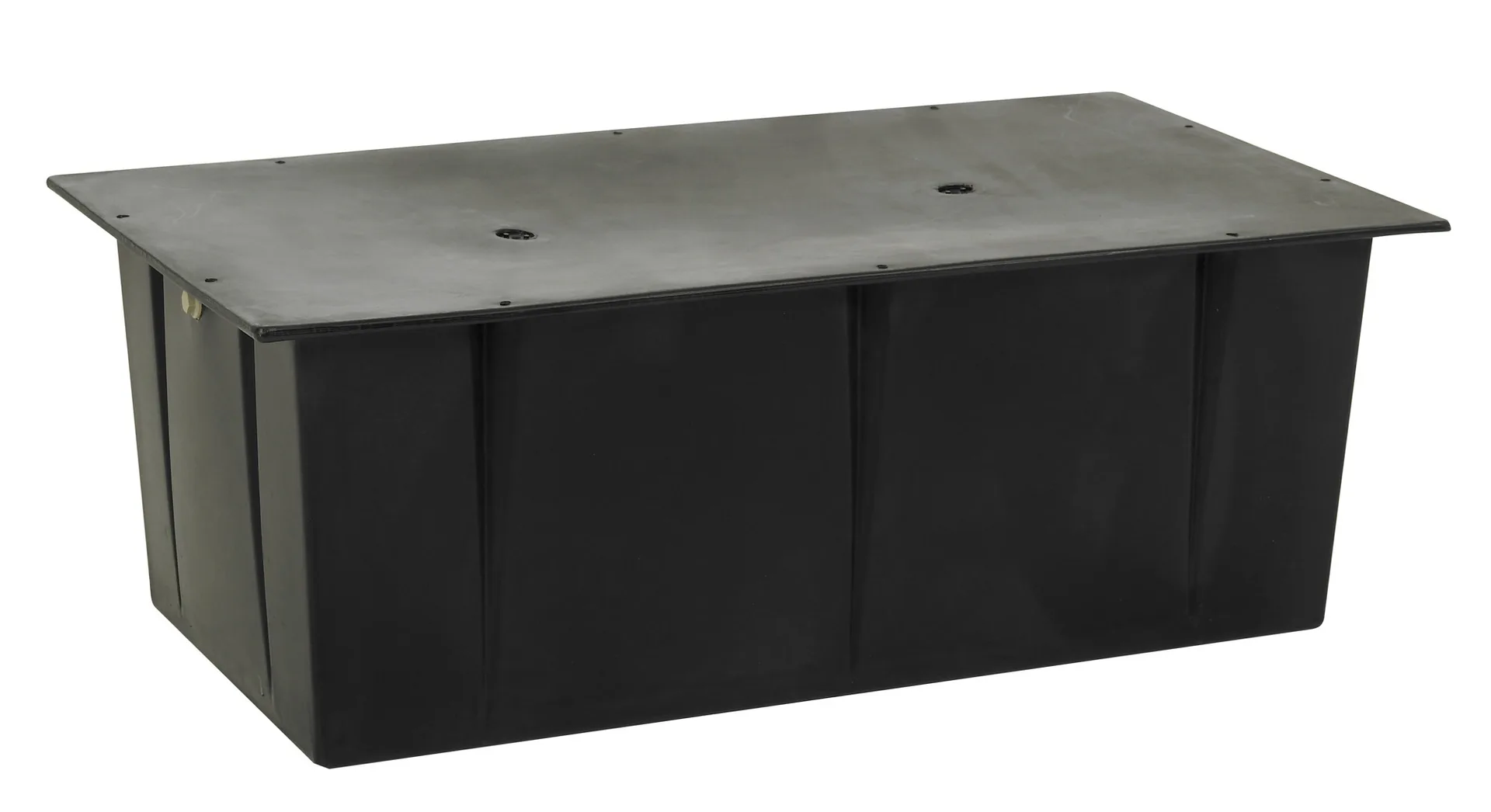 The dock pontoons have pre-drilled screw holes for attaching the pontoon to the dock. The pontoons can also be attached to the dock using support boards, clamps, or tie-down straps. At the end of Meltex dock pontoons, there is a vented opening with a cap, which allows the pontoon to be filled to achieve the desired floating depth.