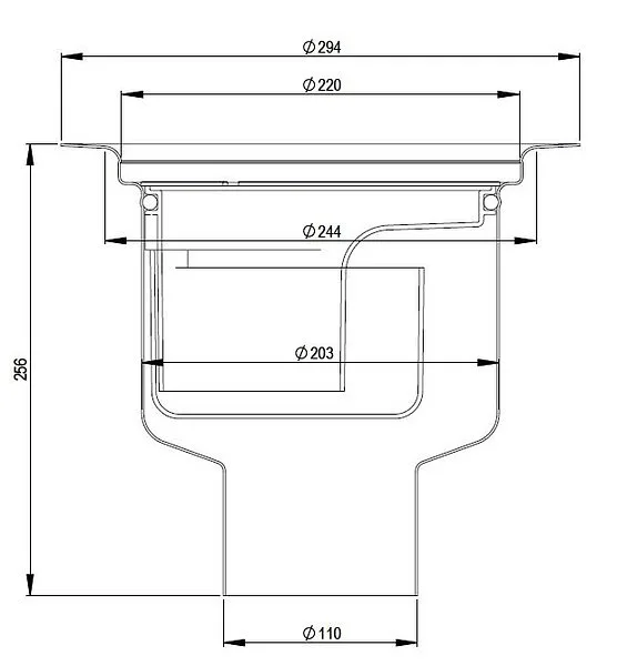 The Heavy 110 R floor drain is a vertical drain with a 110 mm pipe connection that can be installed in a concrete structure.