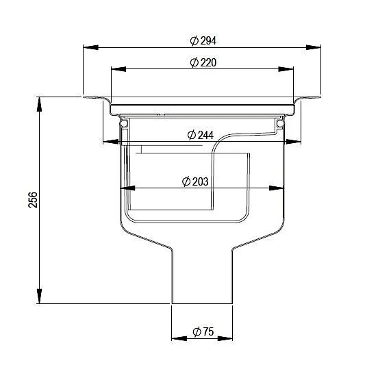 The Heavy 75 R floor drain is a vertical drain with a 75 mm pipe connection that can be installed in a concrete structure.