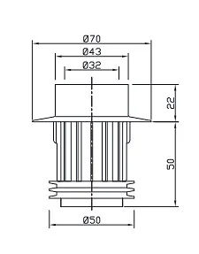 The 32/50 reduction connector is used to connect a 32 mm water trap outlet pipe to a 50 mm drain pipe