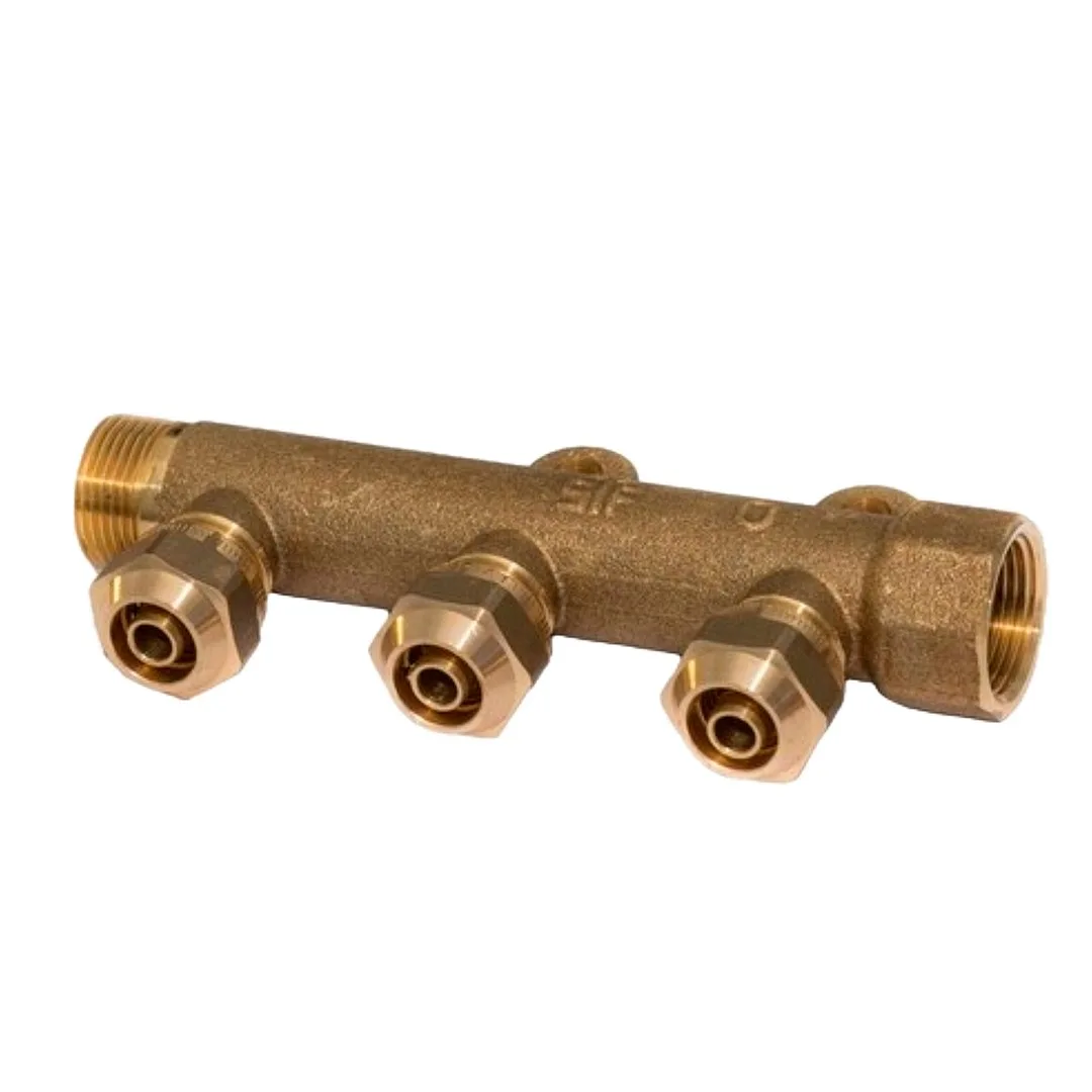 Type-approved faucet mounting box for PEX pipe with compression fitting for connecting flow pipes and sanitary fixtures for potable water installations.