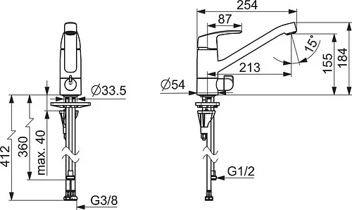 Lever/type of handle: single lever/handle, hot/cold symbols