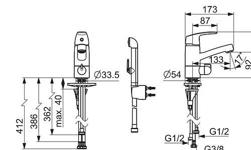 Lever/type of handle: single lever/handle, hot/cold symbols