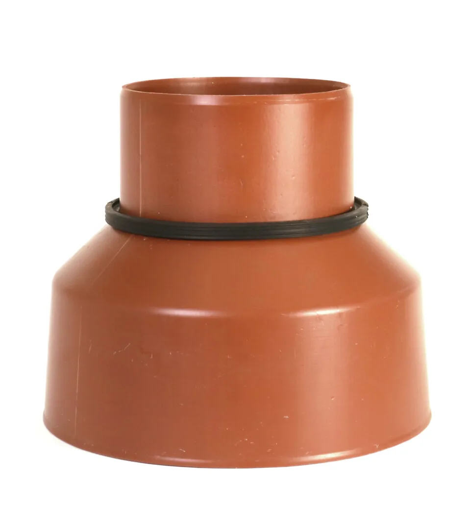 Shrinkable coupling for connecting a plastic land drainage pipe to a concrete pipe.