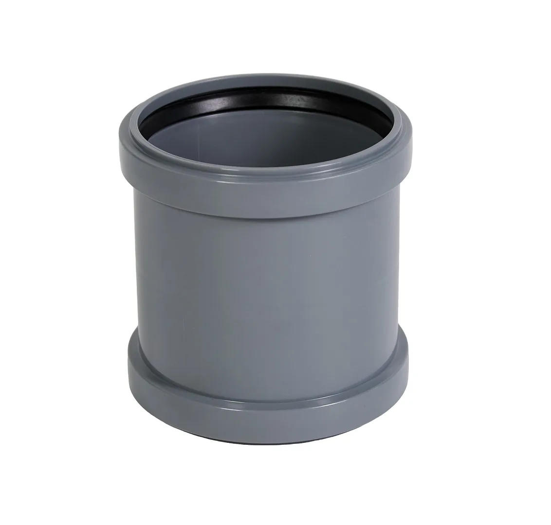 Double socket for connecting and extending property drainage pipes.