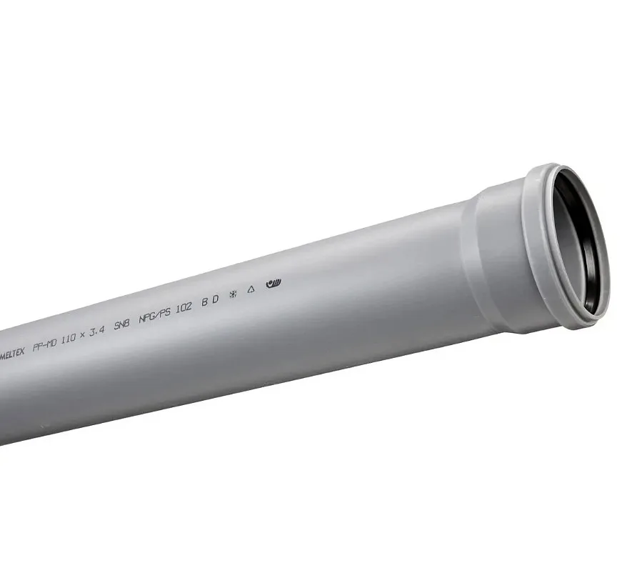 The MELTEX HT building drainage pipe is resistant to hot, cold, and chemicals, and it is lightweight for handling. The pipe features a single-layer structure and is smooth both inside and out. Its ring stiffness is classified as SN8, and it has a socket. Tight joints are ensured with oil-resistant Dinlock seals.