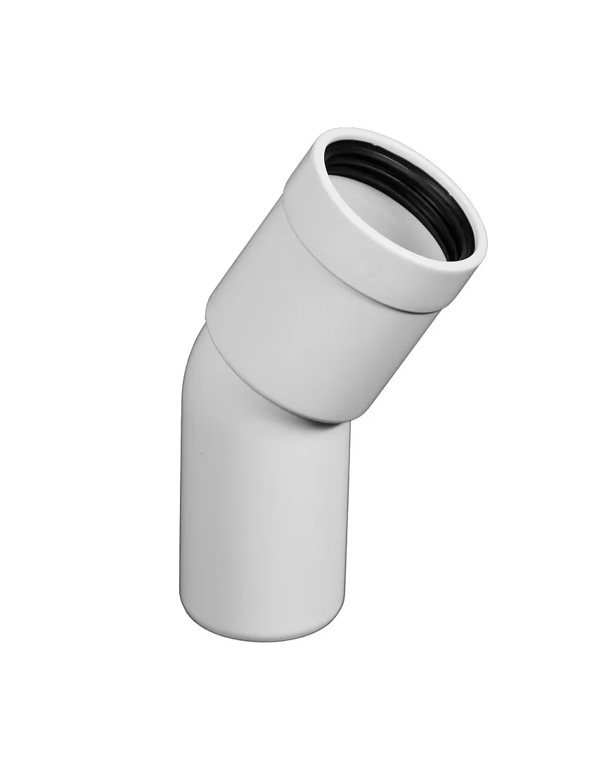 Angle joint for connecting property drainage pipes and implementing angles of 15 degrees.