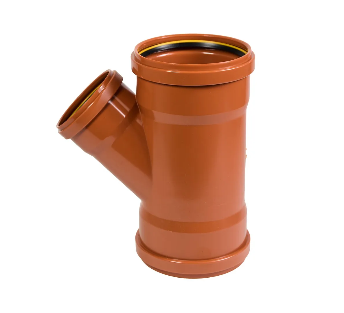 Branch fitting with three sockets for connecting soil drainage pipes and implementing a 45-degree branch.