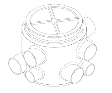 MELTEX branching wells are custom-made according to the installation site. The diameter, height, and number of connections are made to suit the specific requirements, ensuring the necessary connections are exactly as needed. The well features a watertight structure and a thermally insulated cover.