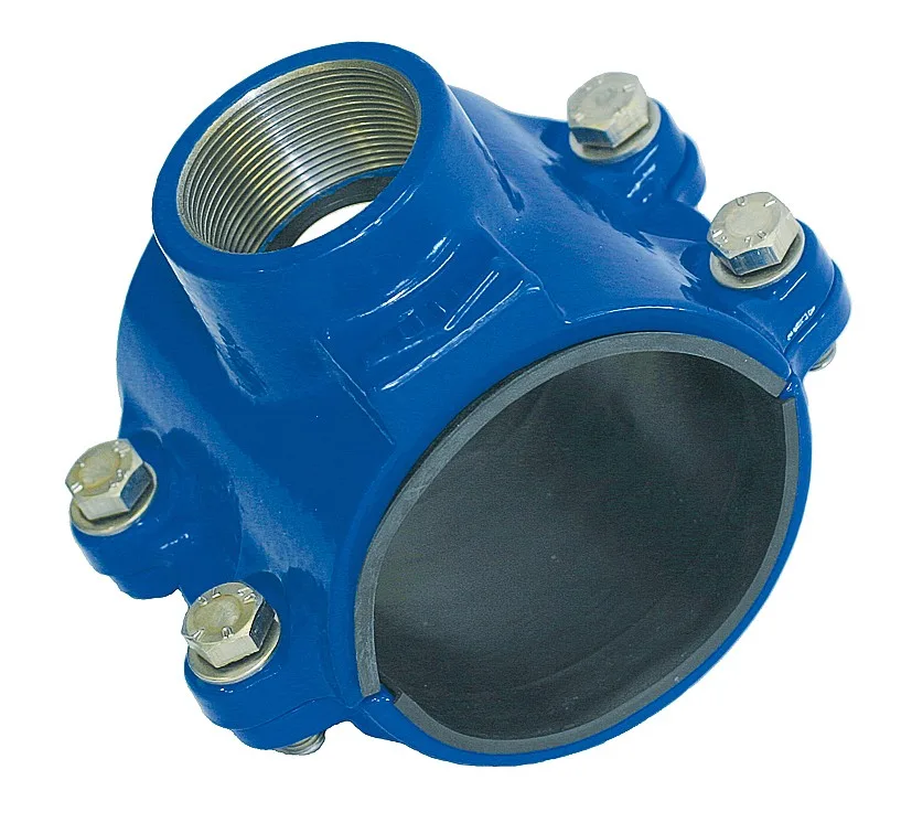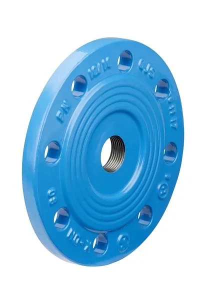 Cast iron threaded flange for implementing flange connections of PE plastic pipes.