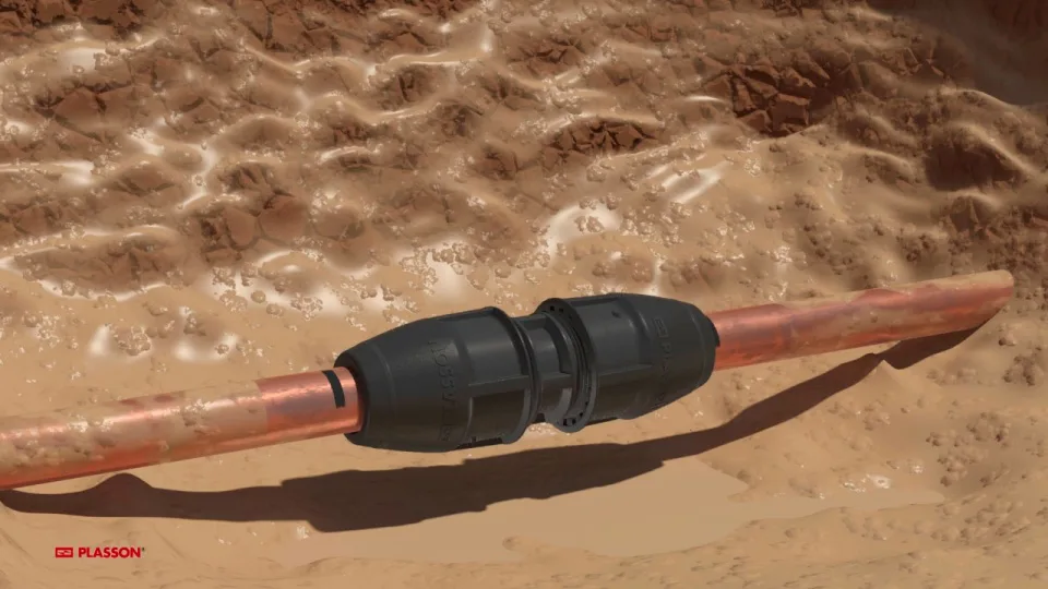 The Plasson Universal Slip Repair Coupler is suitable for all cold water applications. The long connection area with a thick O-ring ensures a secure connection even in poorly maintained pipes or between two pipes. Water pressure tightens the gripping ring, increasing the seal of the connection as pressure rises. The couplings have a pressure rating of PN16 and a lifespan of 50 years.