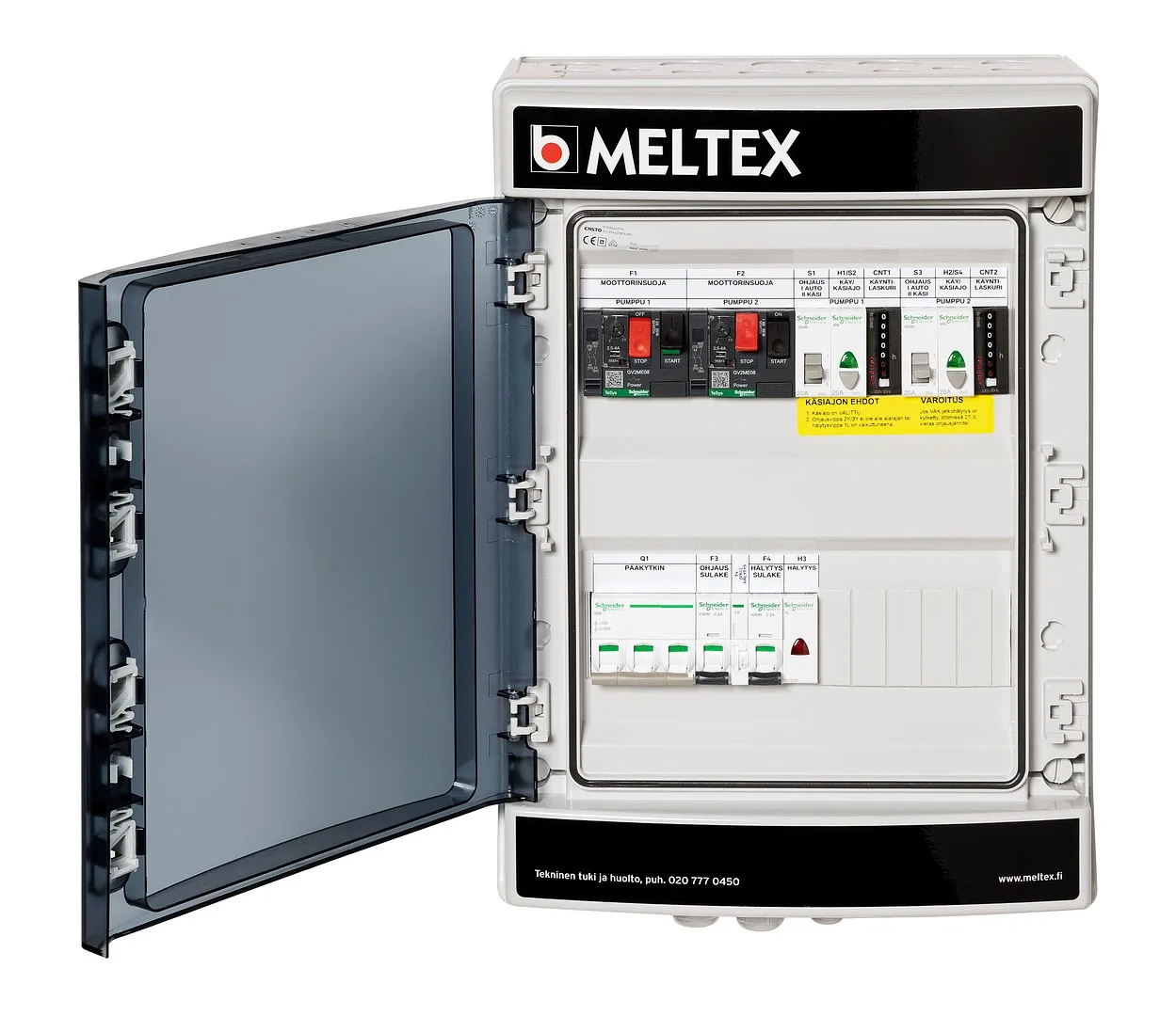 MX Control Centers are available in both 3-phase and 1-phase versions, equipped with various sizes of motor protection switches. The control center is always selected based on the pump’s current rating to ensure that the motor protection switch of the control center adequately protects the pump.