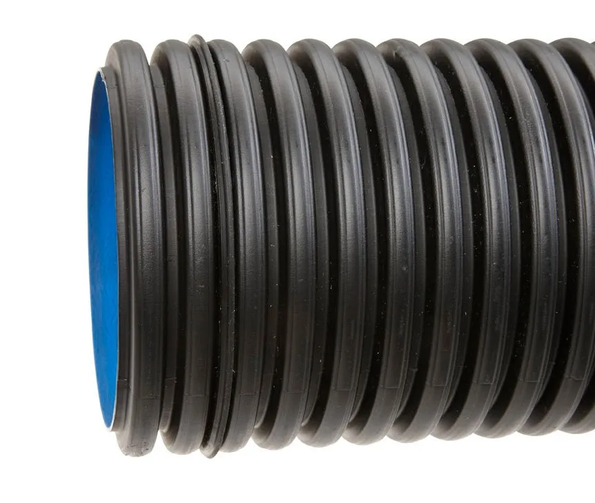 The stormwater pipe is a so-called double pipe, with a corrugated outer surface and a smooth inner surface. The stormwater pipe also features a seal. Pipes in the SN8 strength class are suitable for traffic areas, road construction, and other heavily loaded areas. Smaller sizes are used to direct stormwater from properties, from gutters to base water collection, as well as for technical drainage around buildings. Larger sizes are used in municipal engineering to manage runoff and stormwater.