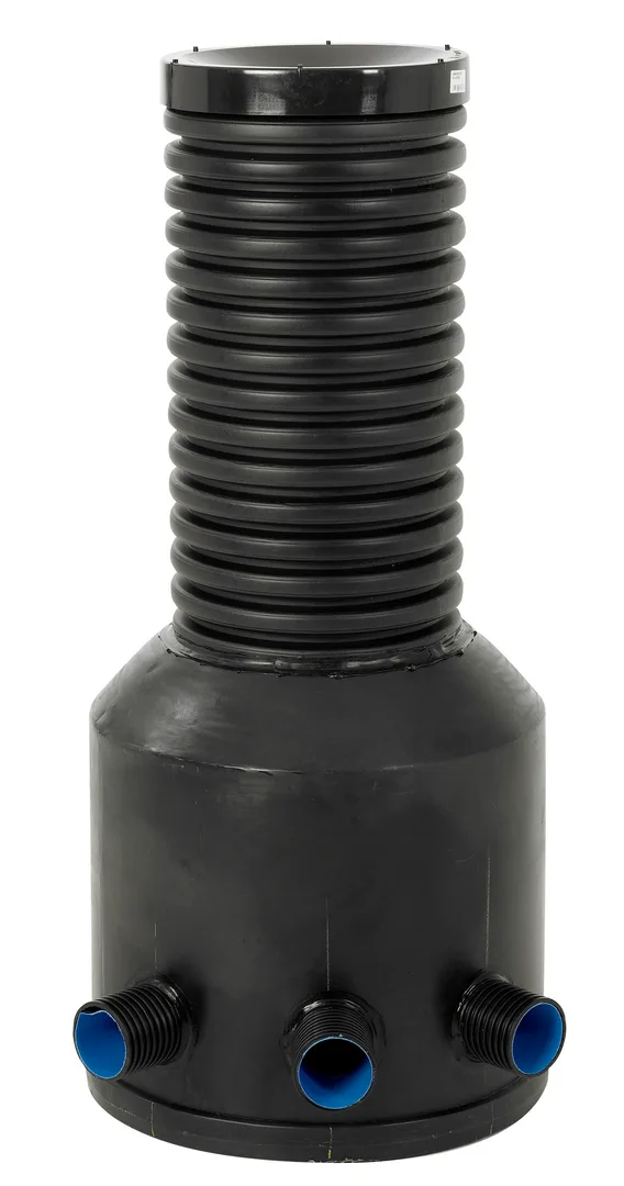 The three 110mm outlets allow for the distribution of water to three pipes, increasing the surface area and efficiency of the soakaway field. Accessories not included.