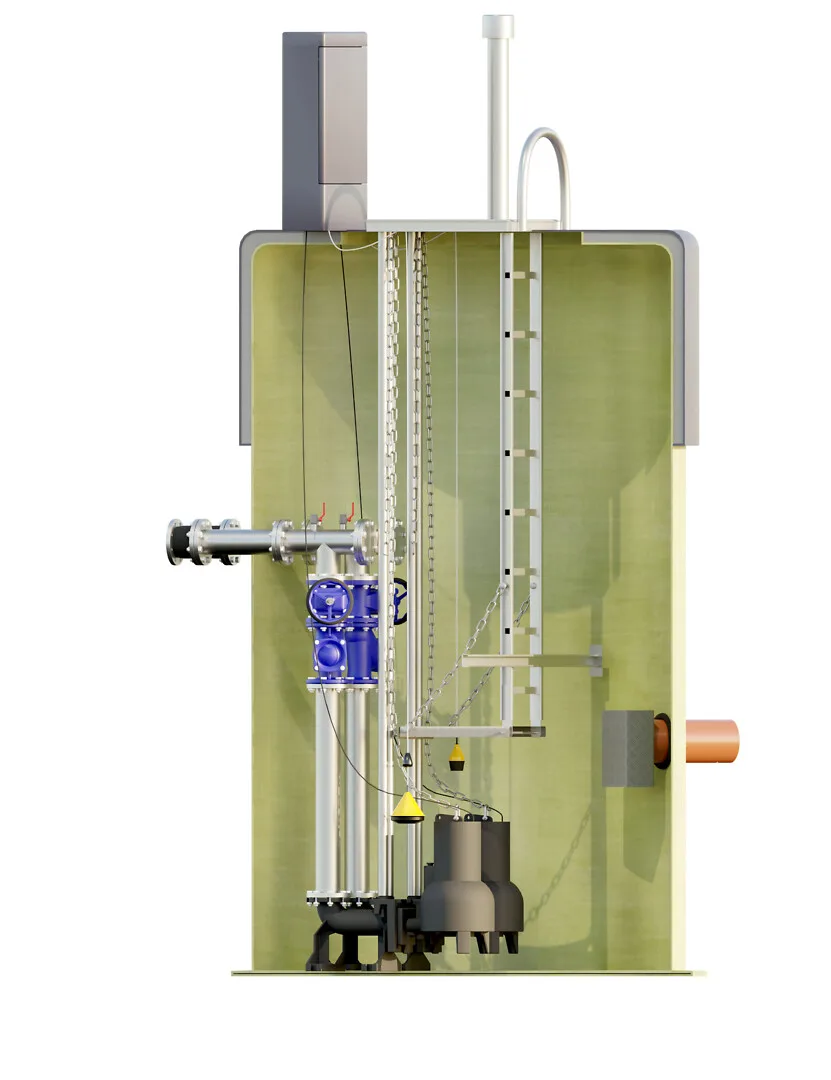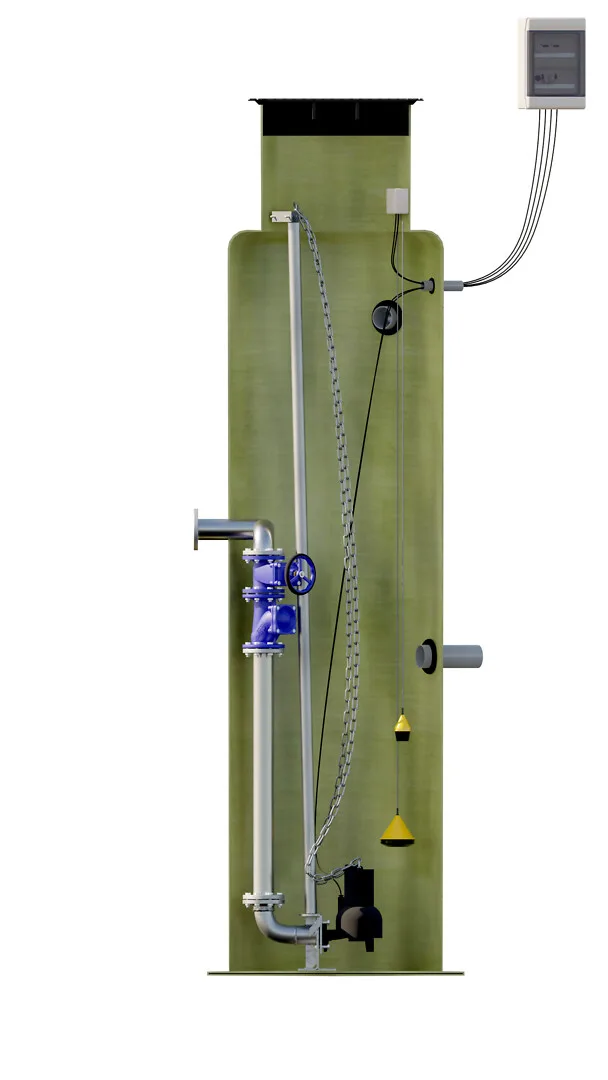 NTS series pumping stations with fiberglass tanks serve both as stormwater and groundwater pumping stations as well as sewage pumping stations.