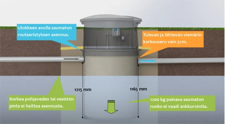 Pienpuhdistamo 1-6 hengen talouteen harmaiden vesien puhdistamiseen.