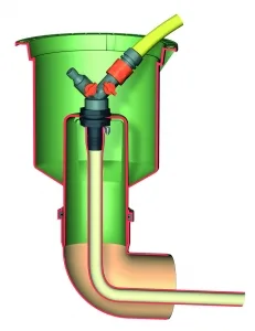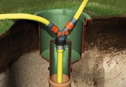 Pikaliittimillä varustettu haaroituskaivo sadevesijärjestelmän laajentamiseen.