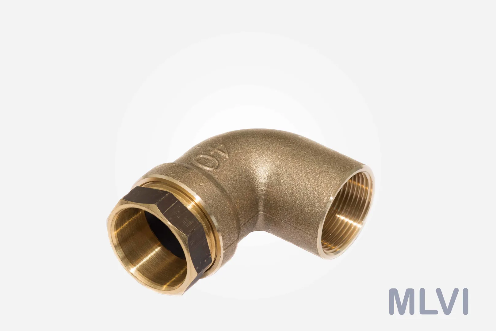 Tyyppihyväksytty messinkikulmaliitin sisäkierteellä PE-muoviputkien liittämiseen.