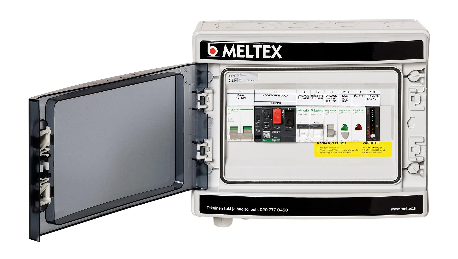 MX-Ohjauskeskus on sisäkäyttöön suunniteltu seinäasenteinen ohjauskeskus, joka ohjaa pumppaamon toimintaa.