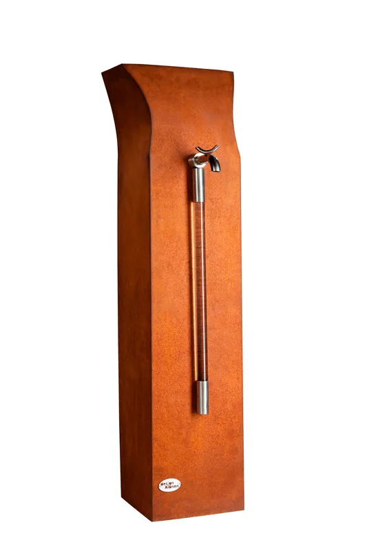 Jylhän pelkistetyn muotokielen omaavat vesipostit soveltuvat eri ympäristöihin ja mukautuvat osaksi kokonaisvaltaista puistosuunnittelua. Rosteriset osat tuovat kepeää kontrastia kauniin orgaanista, säänkestävää Cor-Ten-teräksistä pintaa vasten. Veistoksellisten vesipostien muotoilu on kuvanveistäjä Kari Alosen käsialaa.