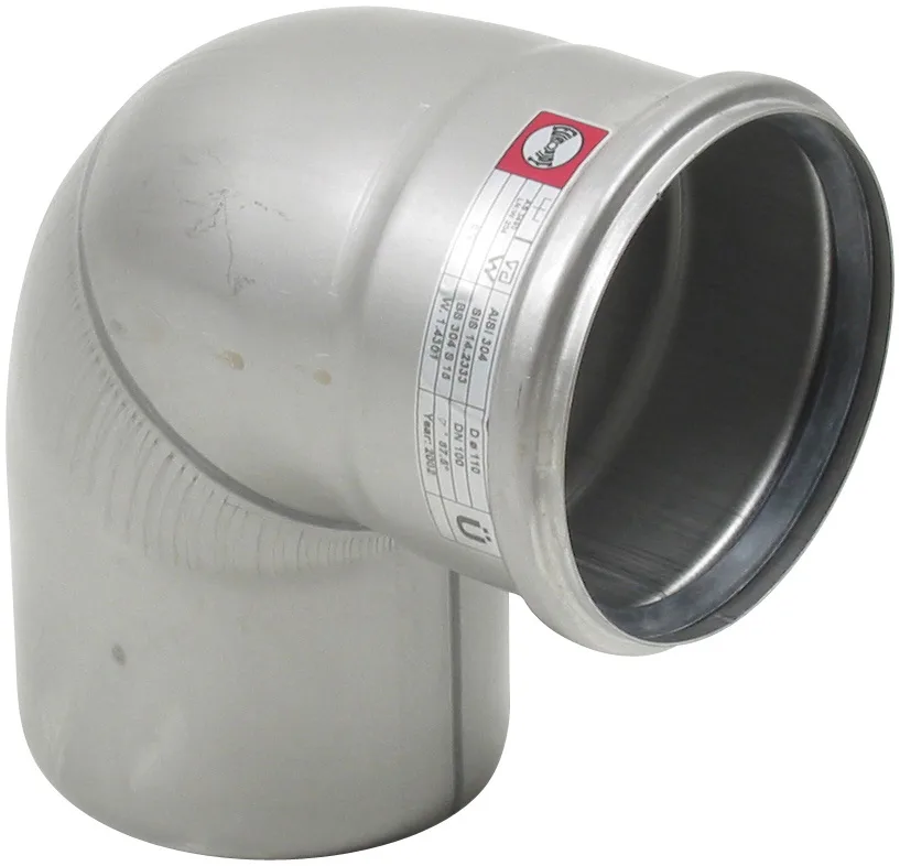 Ruostumattomasta teräksestä valmistettu kulmayhde RST-putkien liittämiseen ja kulmien toteuttamiseen.