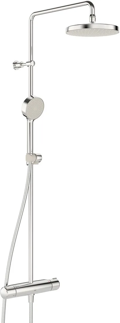 Termostaattinen sadesuihkuhana, jossa on pyöreä, ø 200 mm suihkulautanen, 1-toiminen Oras Apollo -käsisuihku (ø 95 mm), käsisuihkun pidike, suihkuletku ja suihkutanko. Lämmönsäätökahvassa on lämpötilanrajoitin, joka voidaan ohittaa nappia painamalla. Ecoflow-virtaamasäädin. Hanassa on roskasihdit ja yksisuuntaventtiilit.