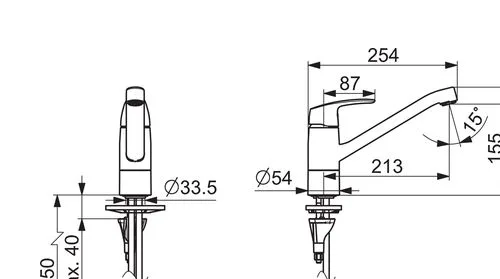 Keittiöhana, jossa kääntyvä juoksuputki 120° (mahdollista rajoittaa 40°-80°).