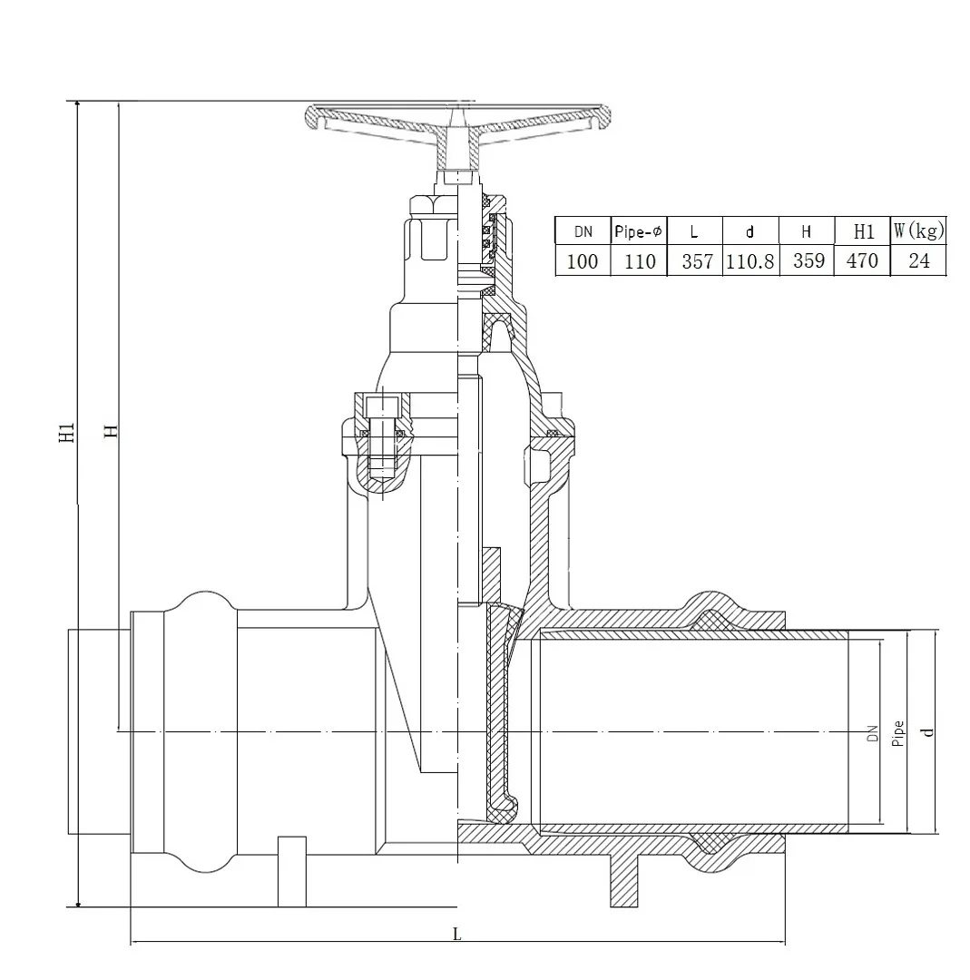 Venttiilikaivo muhviventtiilillä kiinteistöjen väestönsuojiin. Soveltuu WC-vesille.