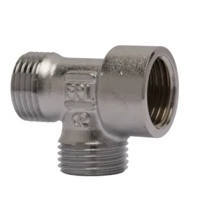 Kromattu t-runko sisä- ja ulkokierteillä puserrusliittimeen.