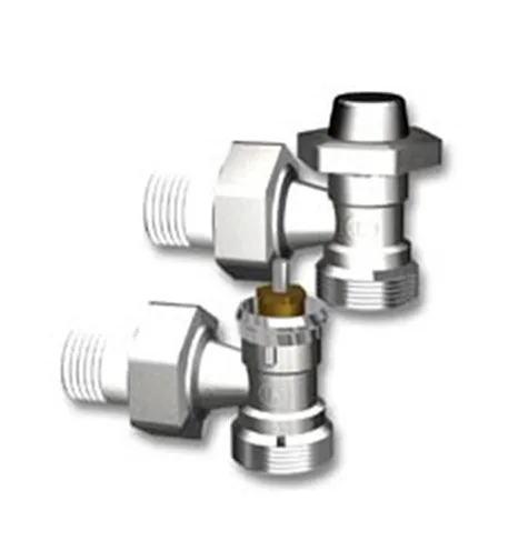 Golvvärmesystemets ventilsats med fram- och returventiler.