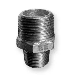 Gängad galvaniserad reduktionsdubbelnippel av smidesjärn med utvändig gänga för anslutning av stålrör.