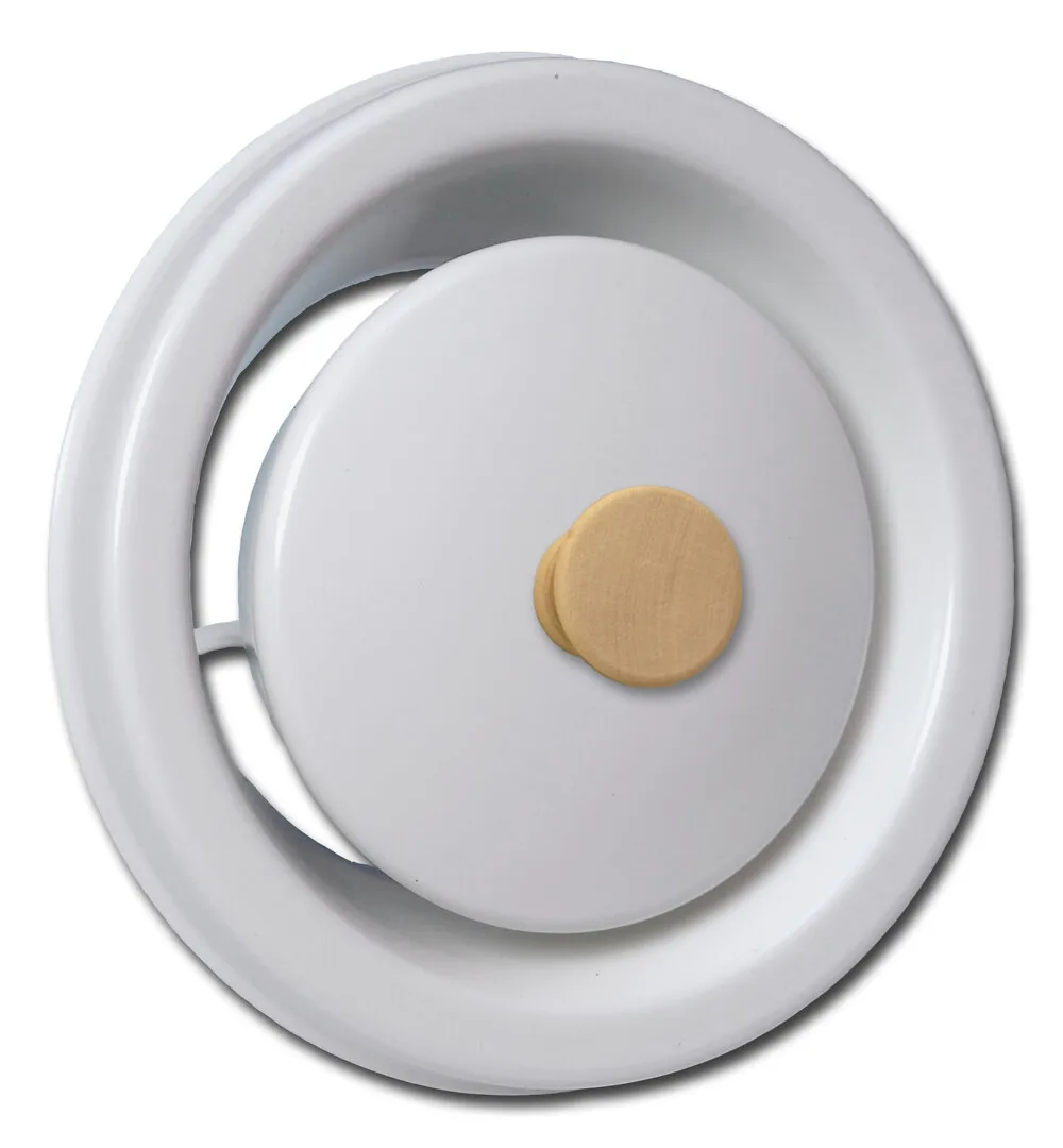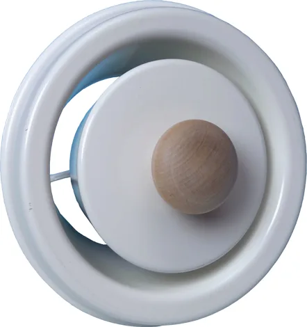 Fjäderfäst ventil för frånluft KSOJ, med fästfjädrar i kroppen, vilket gör att ventilen kan anslutas till kanalen utan monteringsram, om föreskrifterna tillåter.