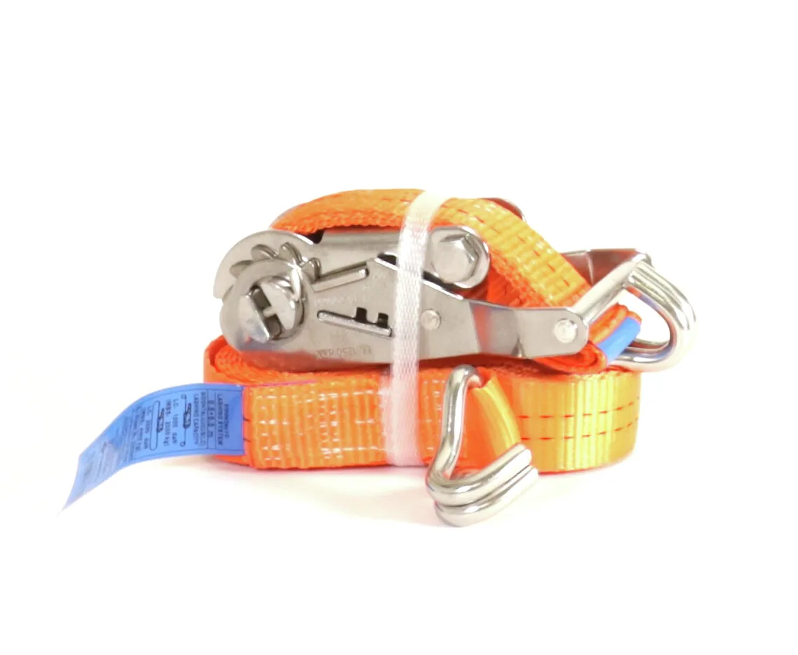 Robust spännband, 50 mm brett och 10 m långt, med lastkapacitet på 3000 kg. Rostfria ståldelar ger utmärkt väderbeständighet.