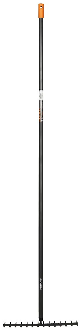 Den mångsidiga Fiskars Solid stålräfsan är perfekt för att forma blomrabatter, jämna ut jord och andra trädgårdsarbeten såsom att räfsa grenar och sprida täckmaterial. Räfshuvudet är tillverkat av härdat kolstål och skaftet är av aluminium.
