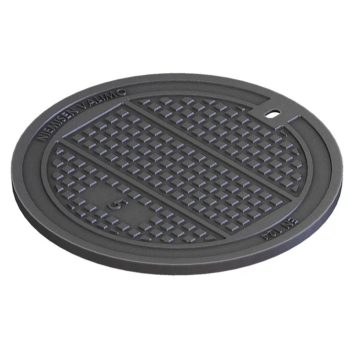 Tunga gjutjärnslock för trafikerade områden. Gjutjärnslock är gjorda av antingen segjärn eller gråjärn, och deras standard belastningsklass är D400.